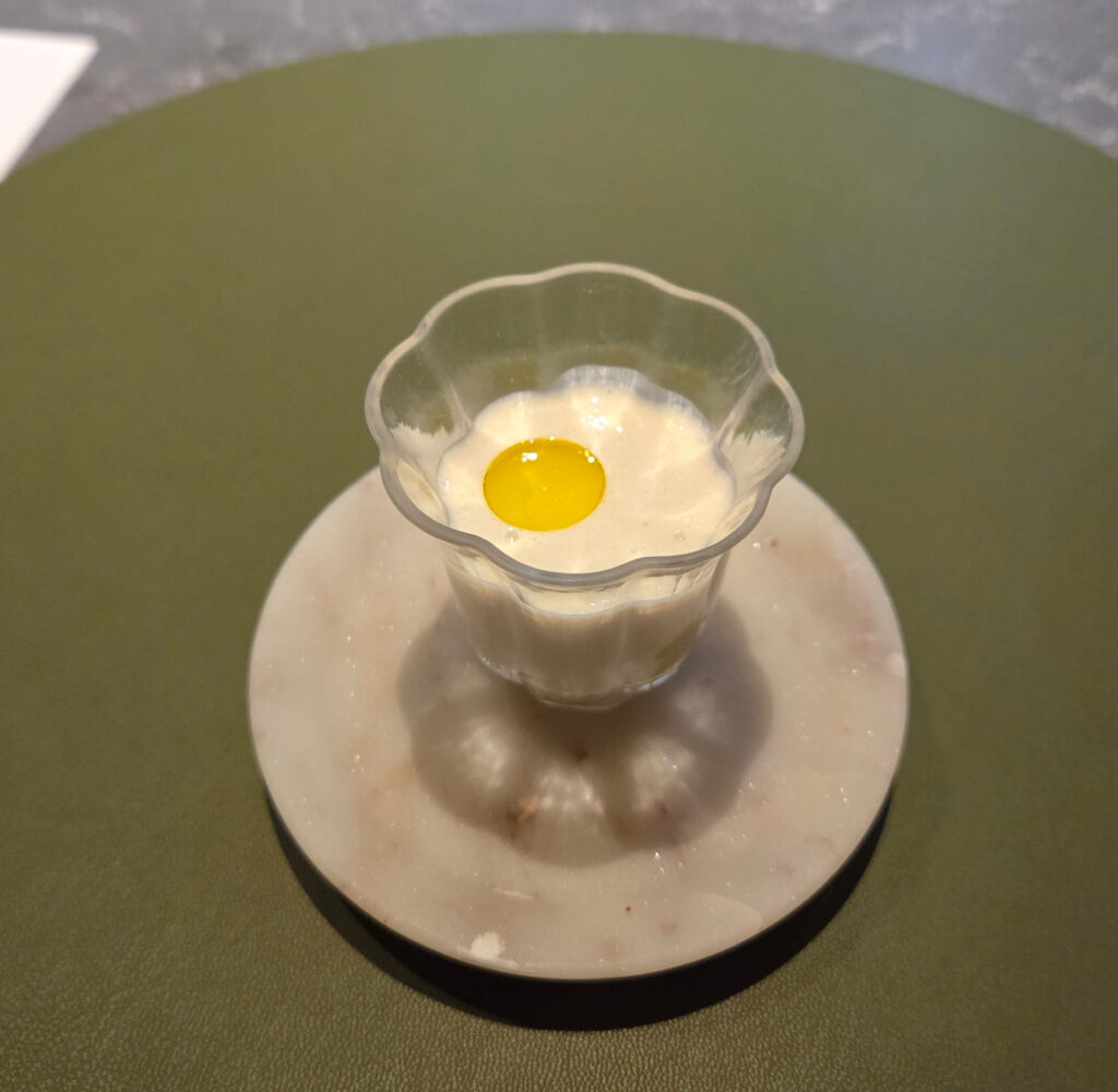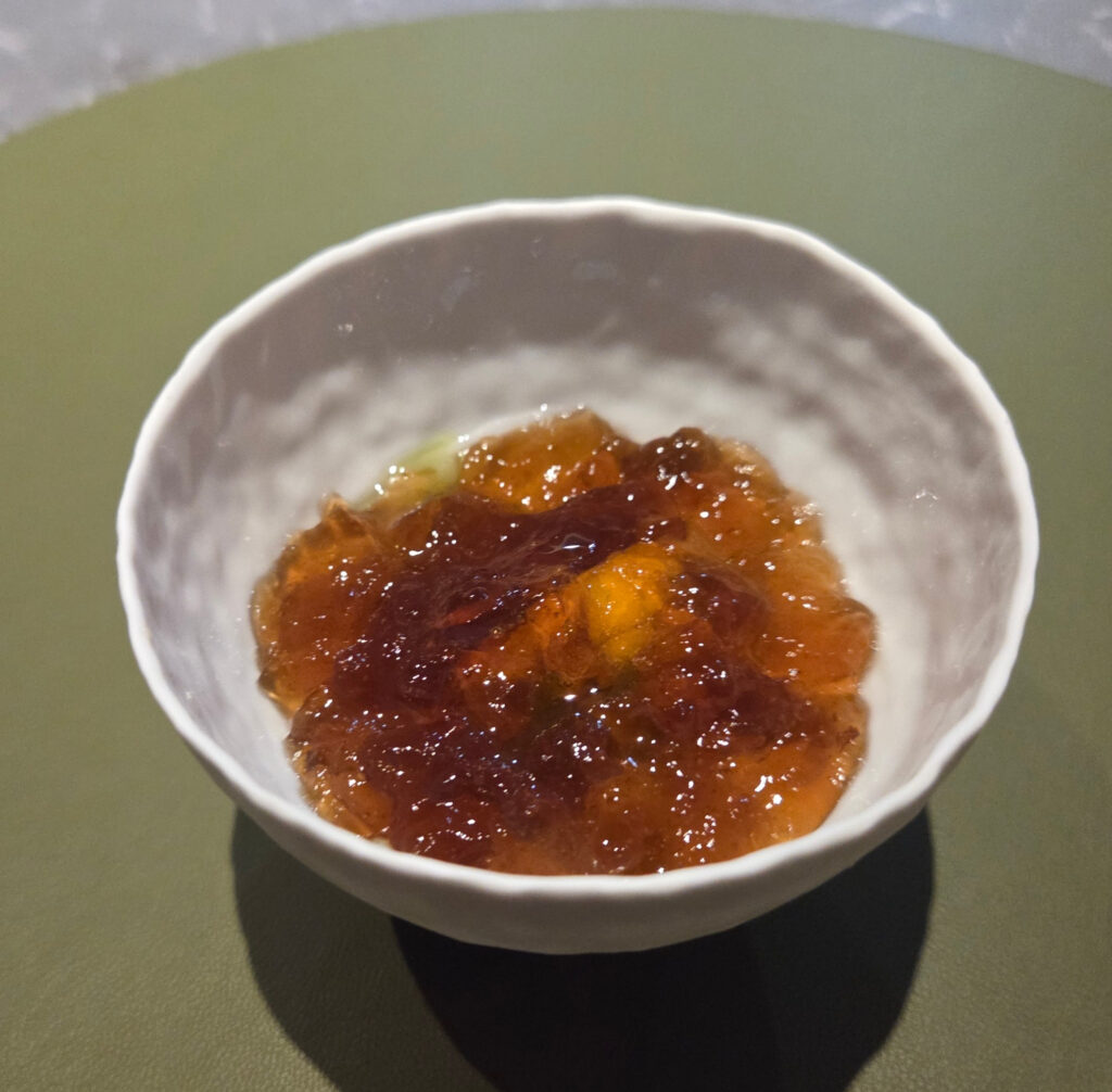 : 다진 도화새우에 누룩, 그리고 캐비어를 얹혀 주셨는데,,