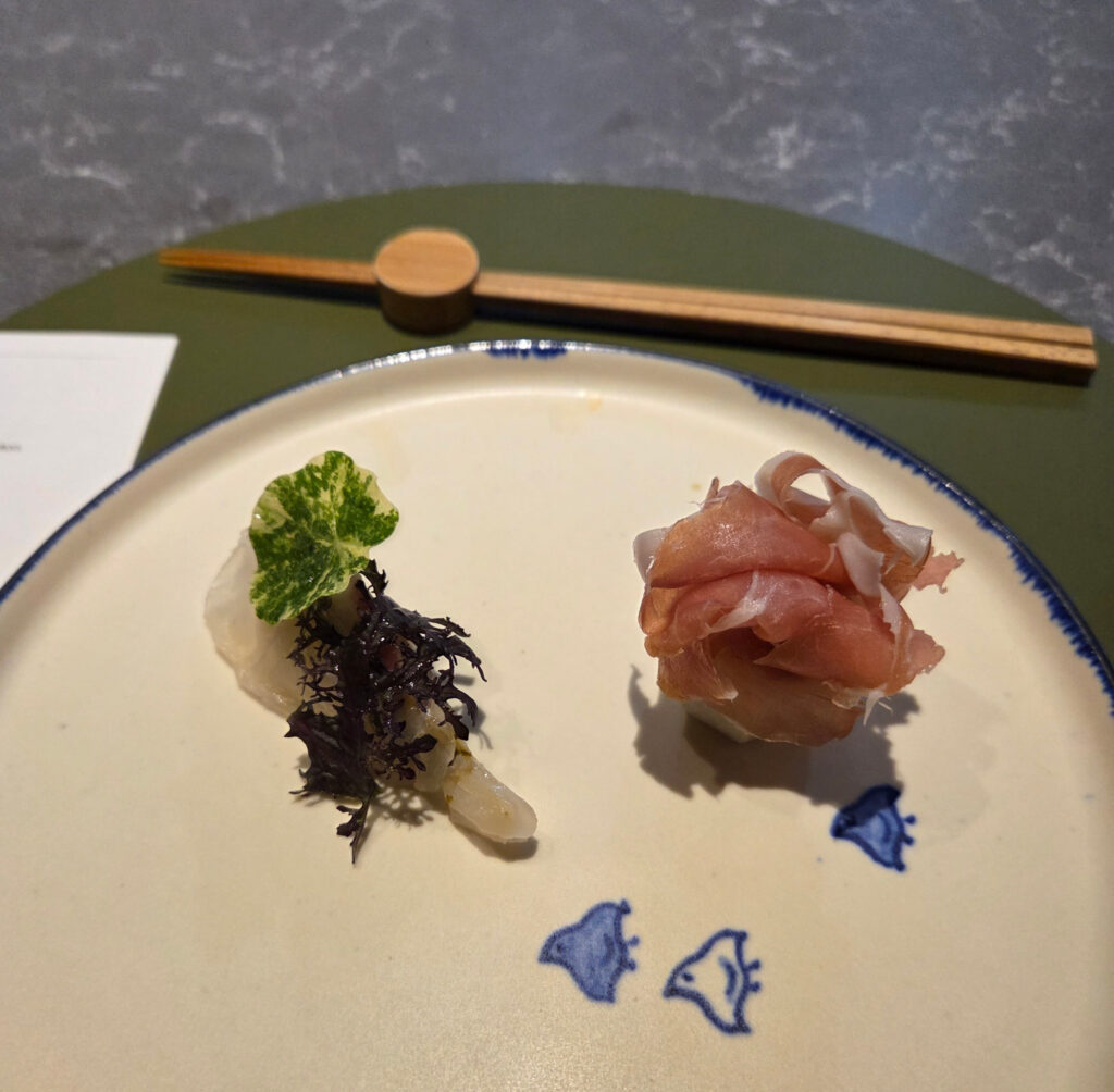 : 토란, 도미, 벚잎, 프로슈토, 유자로 만든…… 임신하고 처음 먹어보는 회…